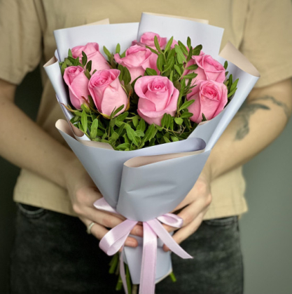 Купить букет из 9 розовых кенийских роз в Челябинске